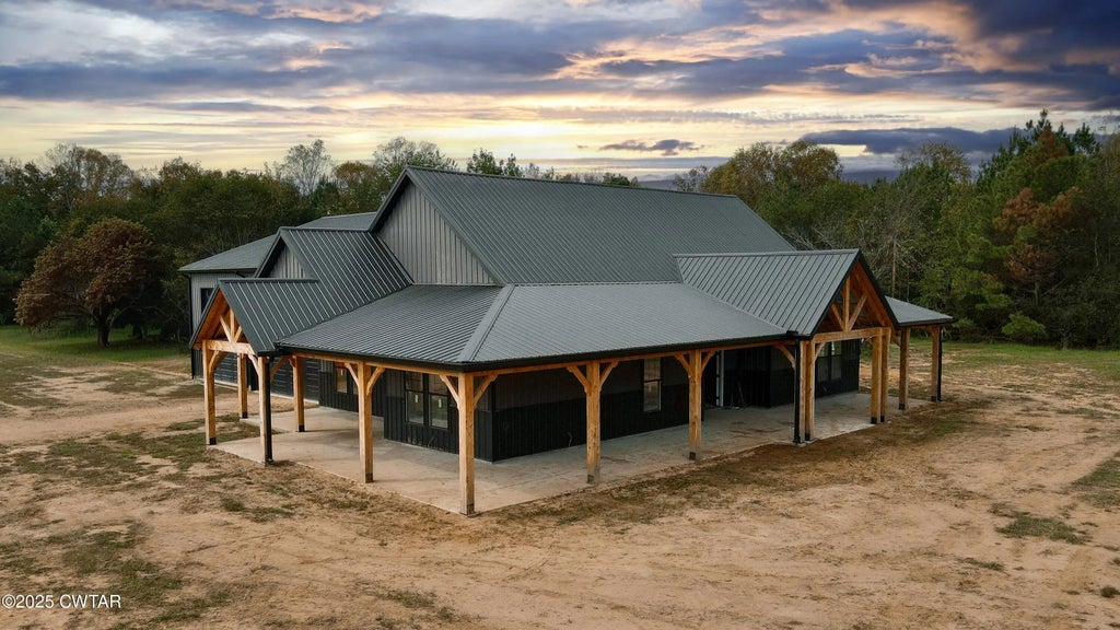 Sitting on 31.7 private acres in Buena Vista, this newly built barndominium offers the kind of space and privacy that's getting harder to find. The home has 4,785 square feet of heated and cooled living space, plus 1,265 square feet of vaulted, timber-framed porches that overlook the surrounding acreage. The attached 43'x48' garage features 16-foot ceilings and oversized doors, giving plenty of room for vehicles, equipment, or hobbies. Inside, you'll find 3 bedrooms and 2.5 baths, granite countertops, large pantry, vaulted ceilings, and concrete floors that will be left unstained so the buyer can choose their finish. All major systems are brand new, including the well, septic, HVAC, and spray-foam insulation. The land offers a quiet, private setting with room to spread out, explore, or create the lifestyle you've been looking for. It's a rare combination of acreage, new construction, and modern comfort in West Tennessee.
